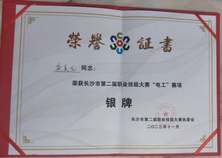 在大賽中一路過關(guān)斬將,憑著過硬技能一顯身手,榮獲本次大賽中斬獲電工組“銀獎”。